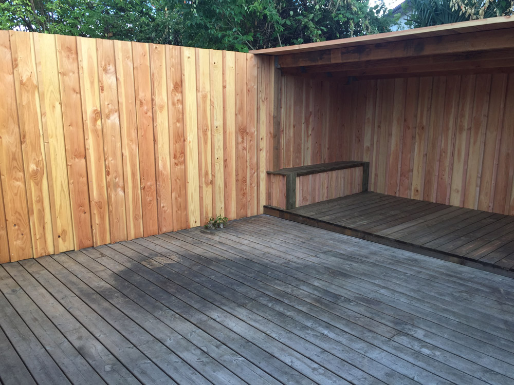 Palissade bois prolongée d'une pergola douglas